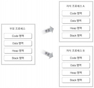 - 프로세스는 각각 독립된 메모리 영역(code, data, heap, stack)을 할당 받으며, 다른 프로세스의 변수나 자료구조에 접근이 불가