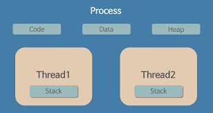 - 프로세스 내에서 stack만 따로 할당을 받고, code, data, heap 영역은 공유