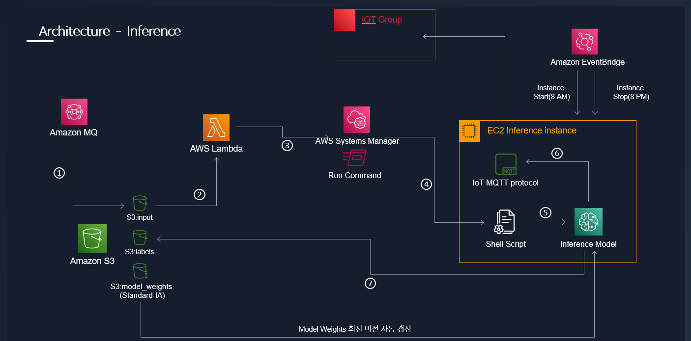 그래서 바꾼게 위에 보는 사진과 같이 AWS 서비스를 이용해서 Inference Pipeline을 구축하였다.