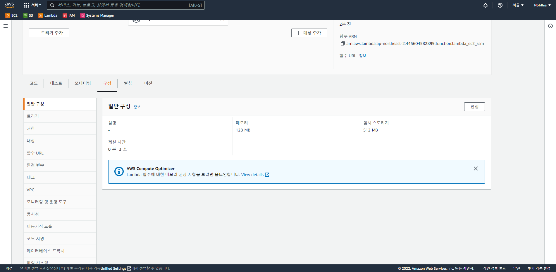 아까도 말했듯 이 함수는 약 5초가 걸리는데 시간을 줄이려면 메모리를 늘려야하는데 1024정도가 적당해보인다